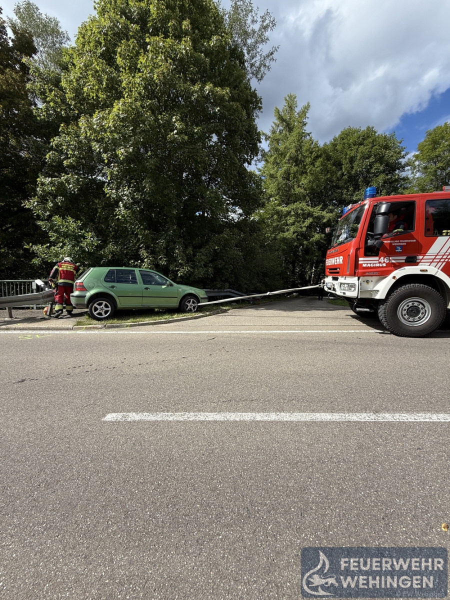 Ein PKW kam von der Fahrbahn ab und bliebt stark verkeilt in einem Brückengeländer hängen. Wir sicherten den Brandschutz und den Verkehr ab. Nach Rücksprache mit der Polizei unterstützten wir bei der Bergung des Fahrzeuges sowie der Aufnahme von Betriebsstoffen.