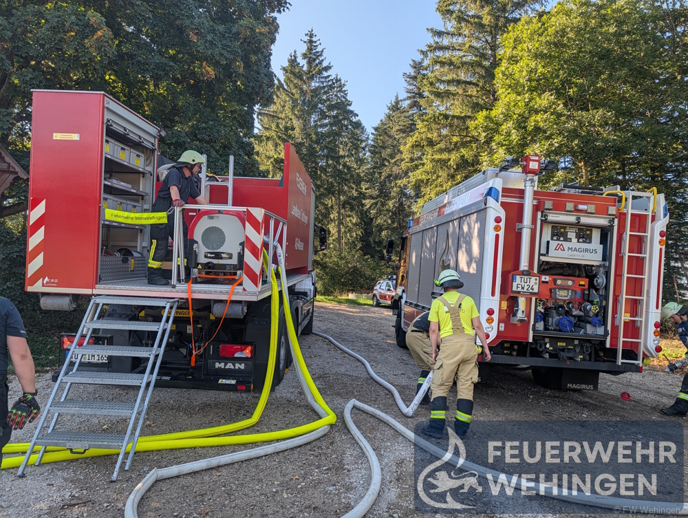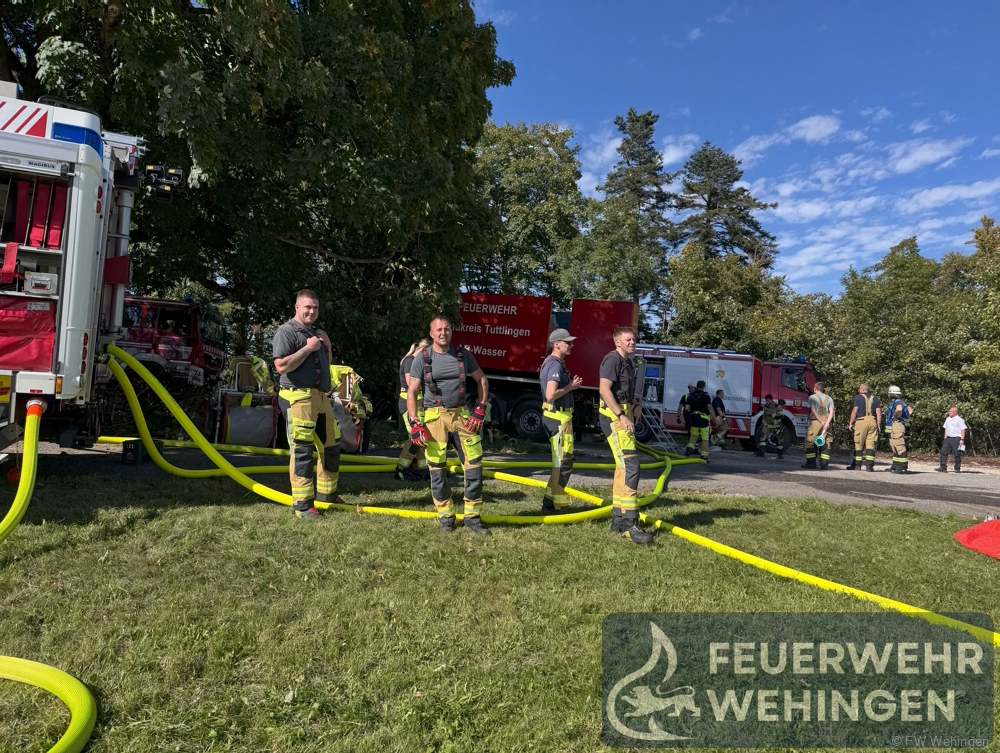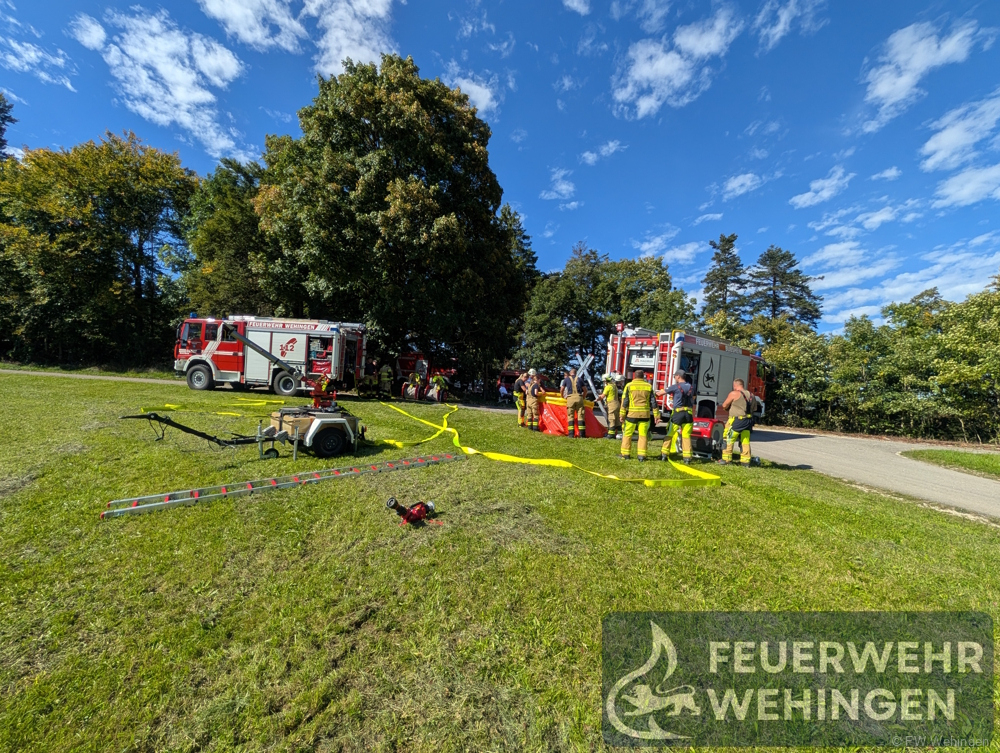 Am gestrigen Samstag durften wir Teil der Übung „IKZ Pendelverkehr“ (Interkommunaler Zug Wasserförderung Pendelverkehr) des Landkreises Tuttlingen sein. Dieser Zug setzt sich aus Fahrzeugen und Personal der Feuerwehren Bubsheim, Tuttlingen, Fridingen und Immendingen zusammen. Aufgabe des Zuges ist es, mit vier wasserführenden Fahrzeugen und einem Führungsfahrzeug eine Wasserversorgung für eine Einsatzstelle aufzubauen. Insgesamt 24.000 Liter Tankinhalt sowie verschiedene Pufferbehälter können so über einen Pendelverkehr die Wasserversorgung zwischen Hydrant und Einsatzstelle sicherstellen.